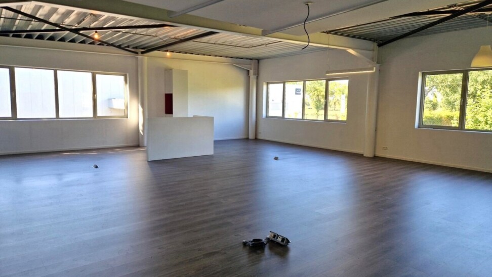 De ruimte is polyvalent en open van opzet, waardoor ze geschikt is voor uiteenlopende professionele invullingen — van administratief kantoor tot creatieve werkplek.