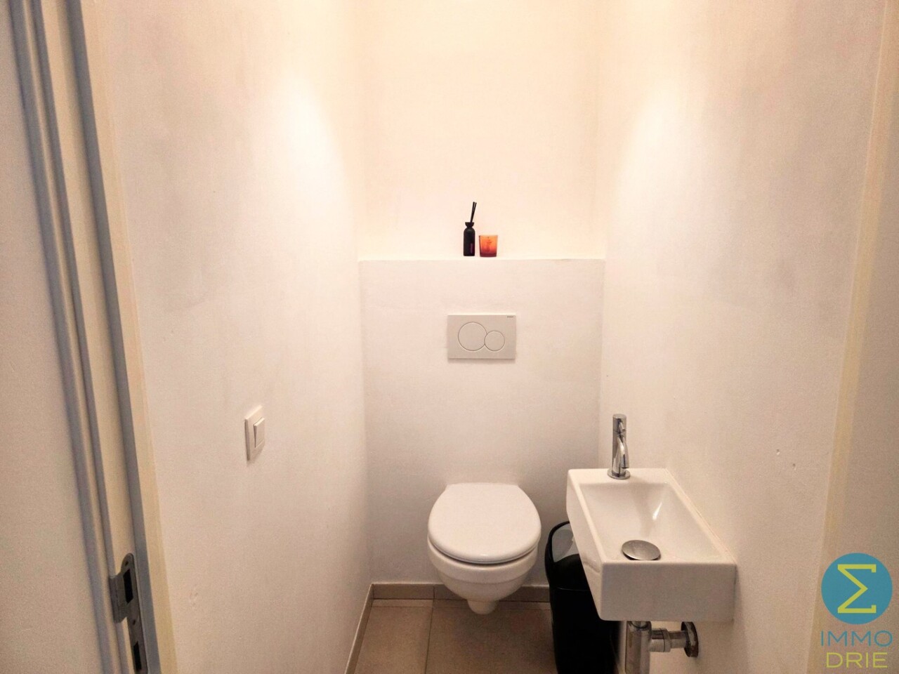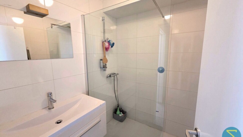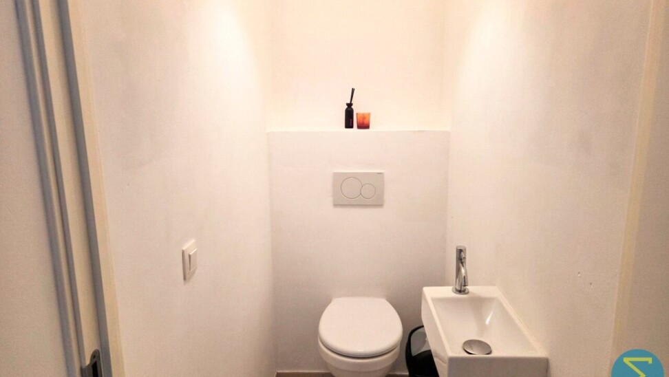 Indeling: inkom met berging en afzonderlijke toilet, ruime woonkamer met open keuken en toegang tot terras, één slaapkamer met naastliggende badkamer.