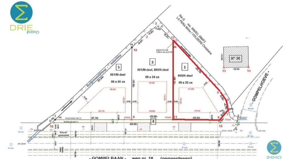 Perceel bouwgrond van 632m², gelegen aan de Gompelbaan in Mol.