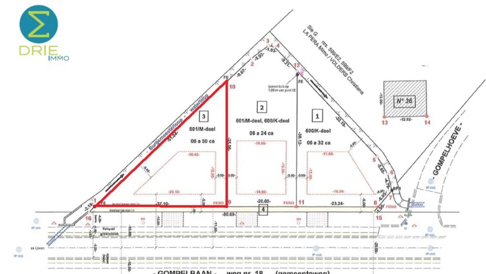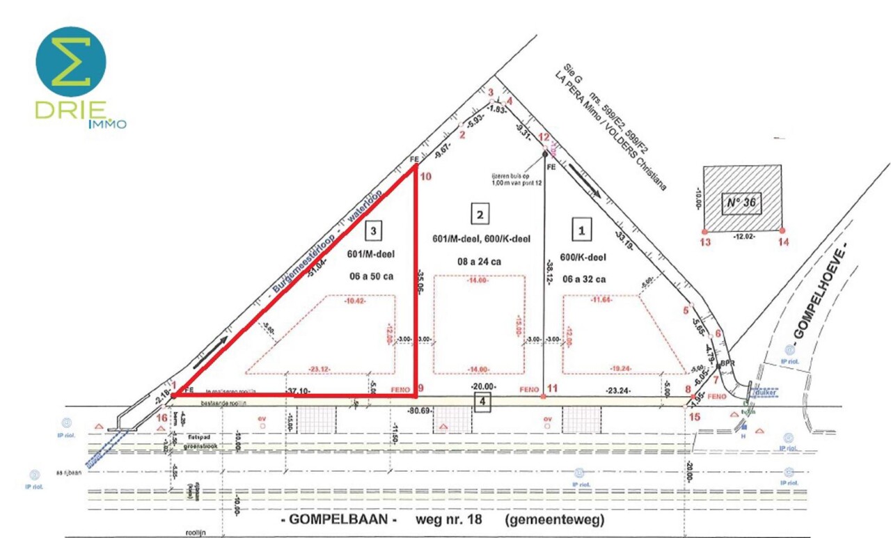 Perceel bouwgrond van 650m² gelegen aan de Gompelbaan in Mol. Dit perceel is voor de oprichting van een vrijstaande woning met tuin gericht op het zuiden. Het perceel heeft een schuine zijde waarlangs een waterloop loopt, wat zorgt voor een natuurlijk karakter. Centrale ligging nabij station en centrum.