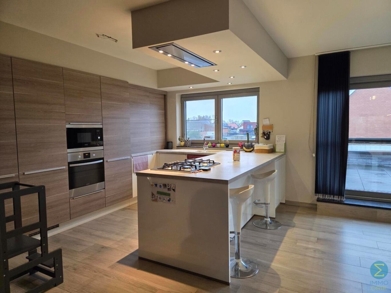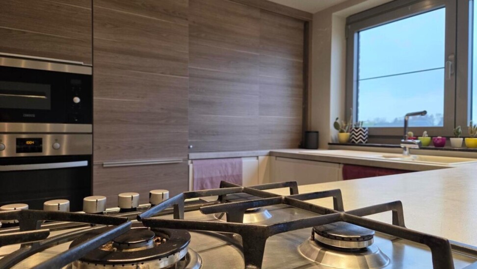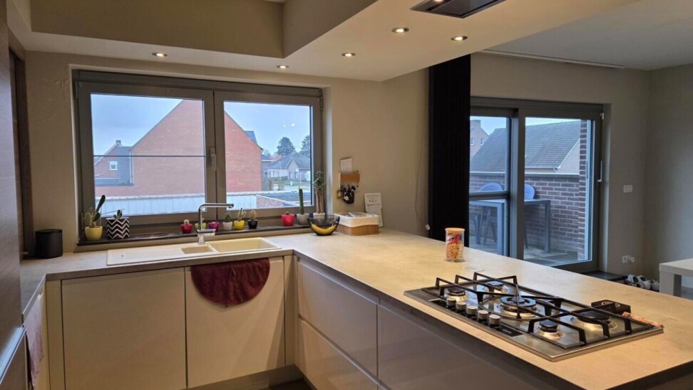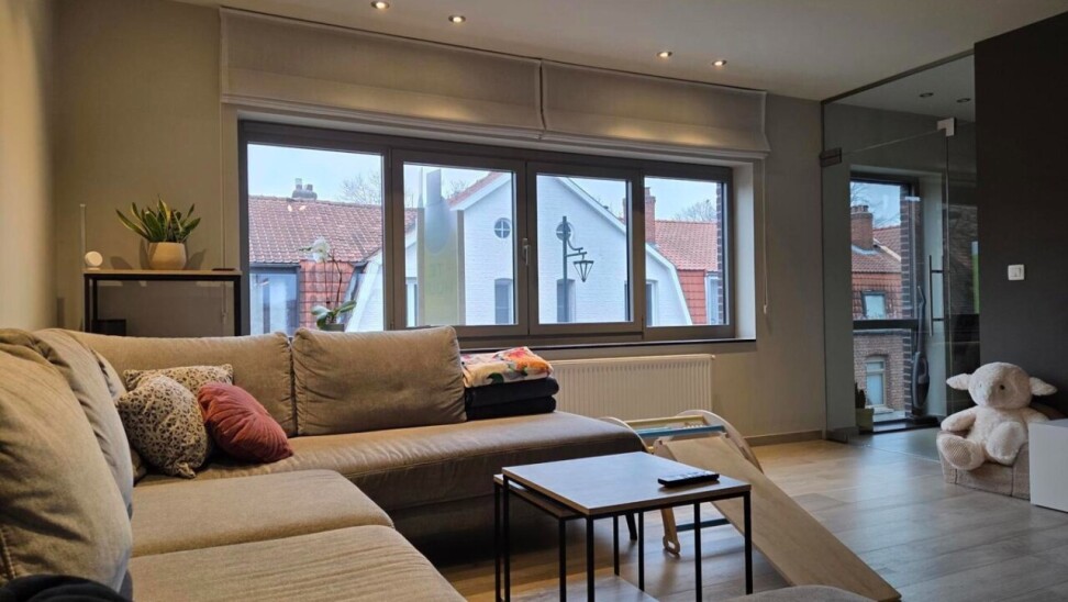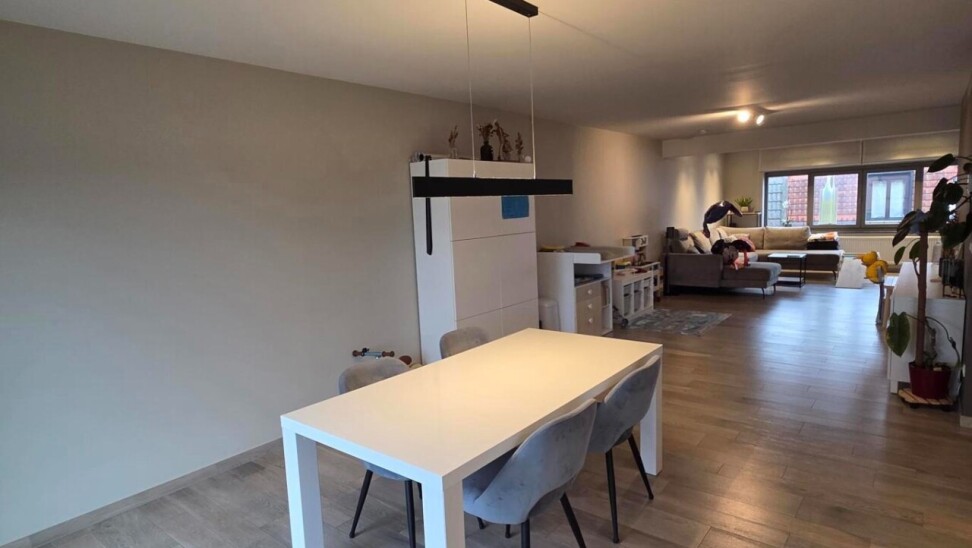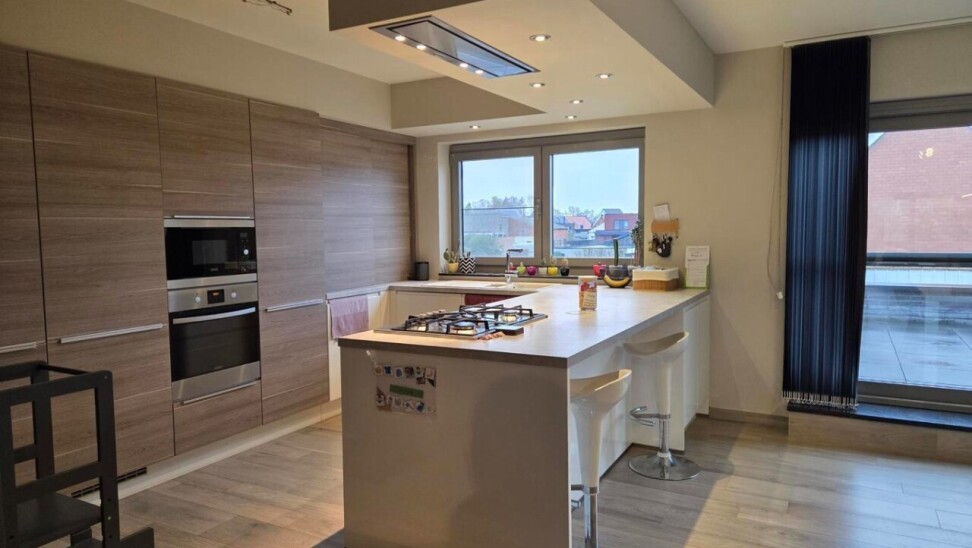 Welkom in dit energiezuinige duplexappartement. Bij het binnenkomen stap je de inkomhal binnen, die toegang biedt tot de zeer ruime woonkamer en de trap naar de bovenverdieping. De woonkamer is licht en luchtig en grenst aan de open, volledig afgewerkte keuken, voorzien van een halfvast kookeiland met gasvuur, oven en microgolf, vaatwasser en voldoende opbergruimte — ideaal voor wie houdt van koken in een stijlvolle, praktische omgeving.