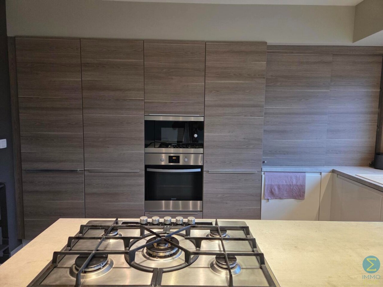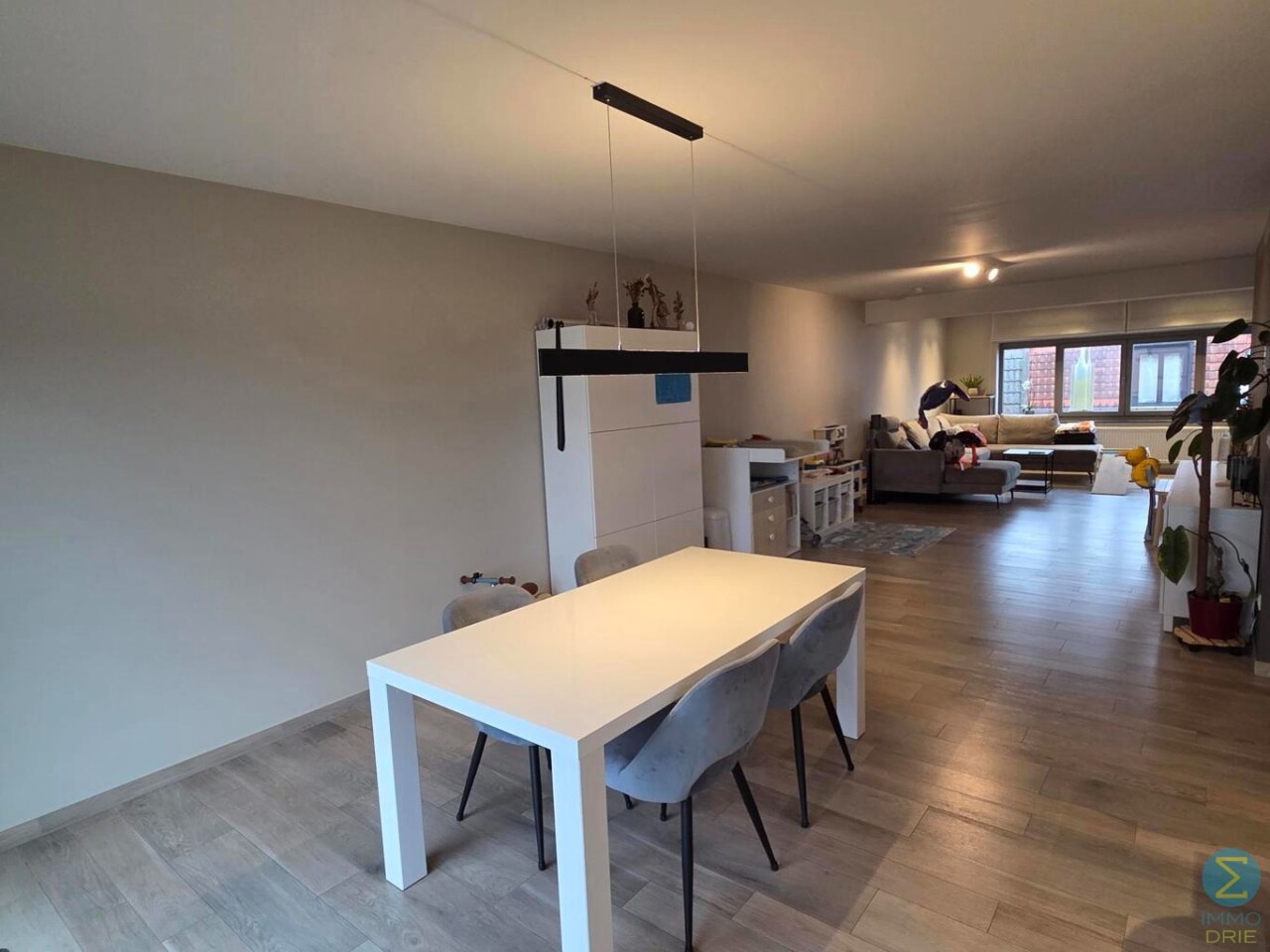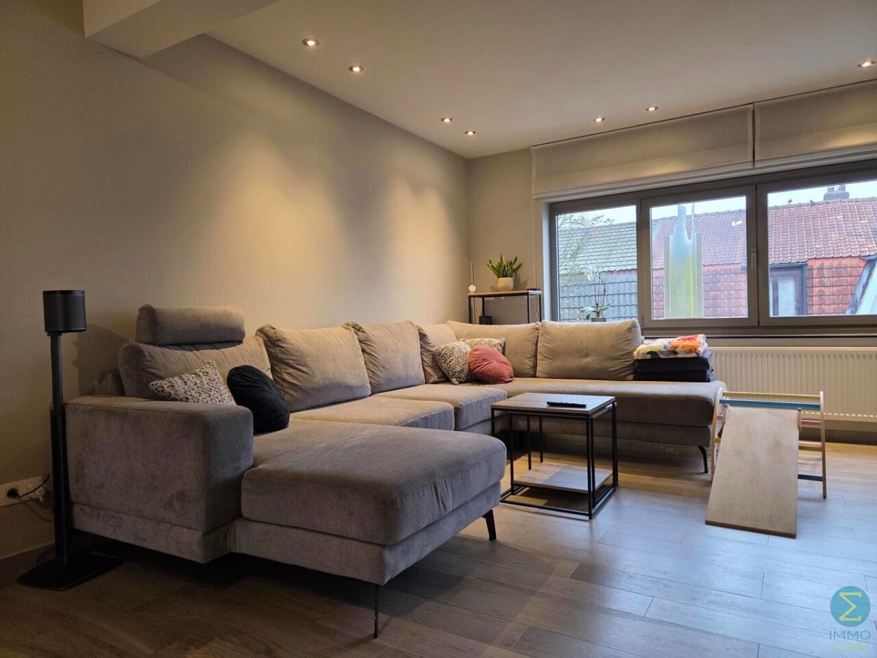 Welkom in dit energiezuinige duplexappartement. Bij het binnenkomen stap je de inkomhal binnen, die toegang biedt tot de zeer ruime woonkamer en de trap naar de bovenverdieping. De woonkamer is licht en luchtig en grenst aan de open, volledig afgewerkte keuken, voorzien van een halfvast kookeiland met gasvuur, oven en microgolf, vaatwasser en voldoende opbergruimte — ideaal voor wie houdt van koken in een stijlvolle, praktische omgeving.