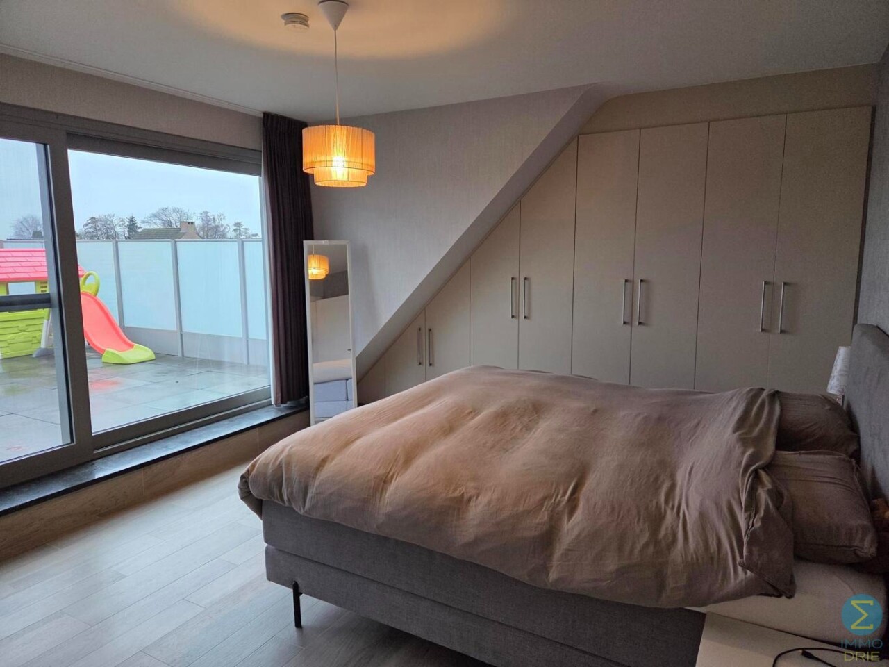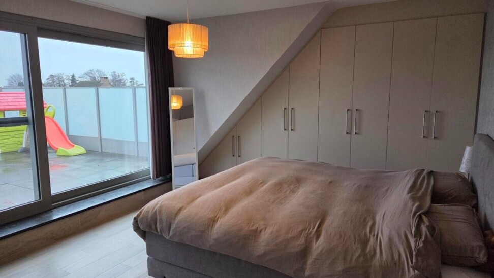 Op de bovenverdieping bevinden zich twee slaapkamers waarvan de master bedrooom is voorzien van ingemaakte kasten. Tevens een apart toilet met wastafel aanwezig op deze verdieping. De ruimste slaapkamer biedt directe toegang tot een groot dakterras, ideaal om in alle privacy van de buitenlucht te genieten.