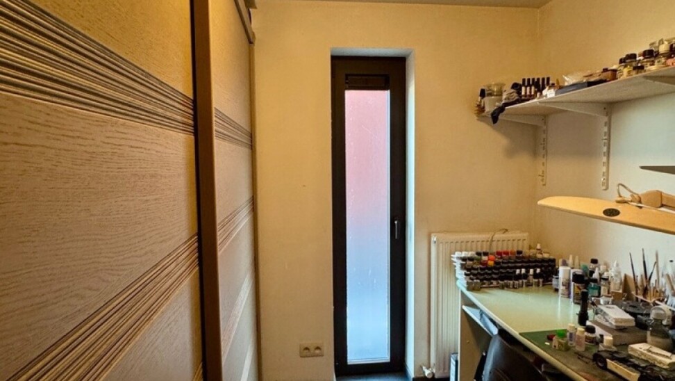 Langs de woonkamer kan u naar de ruime inpandige garage, alwaar eveneens de aansluiting voor uw wasmachine is + CV-ketel. De garage beschikt over een automatische poort en heeft een lange oprit, alwaar eventueel ook een auto kan staan.