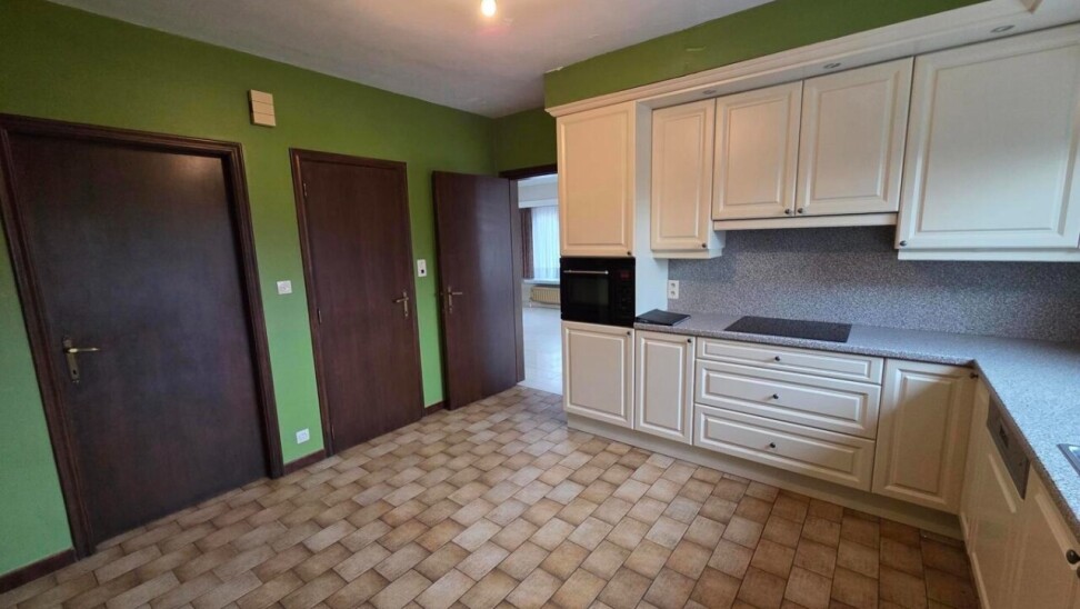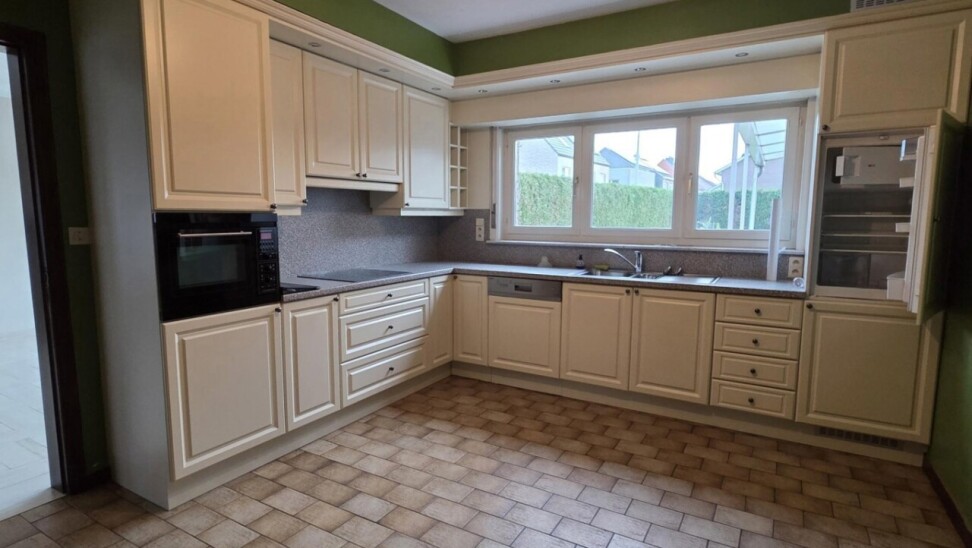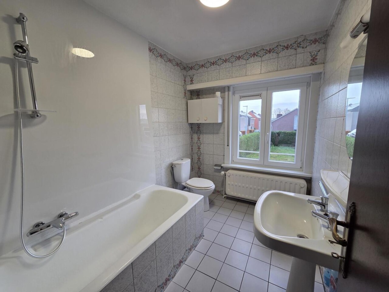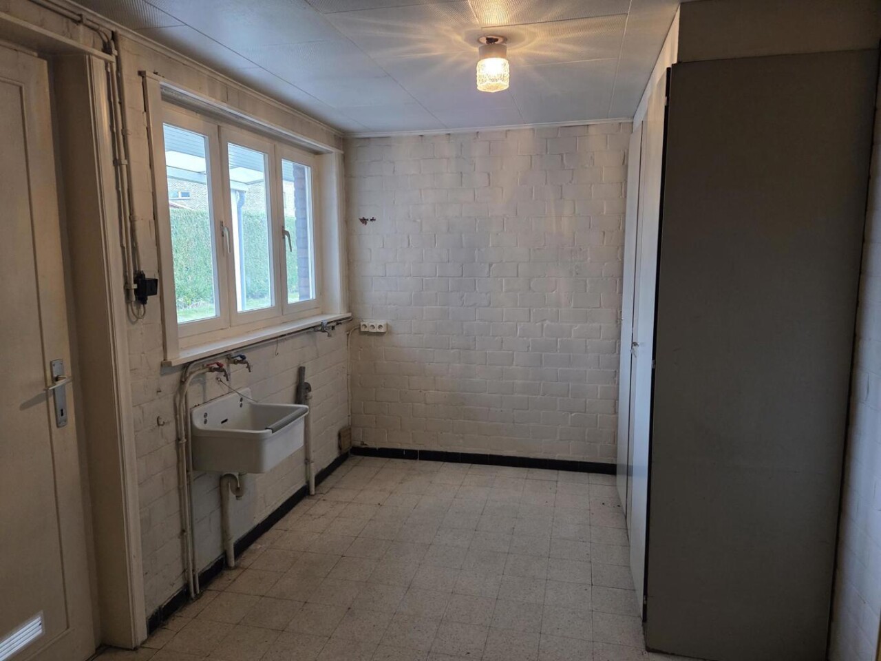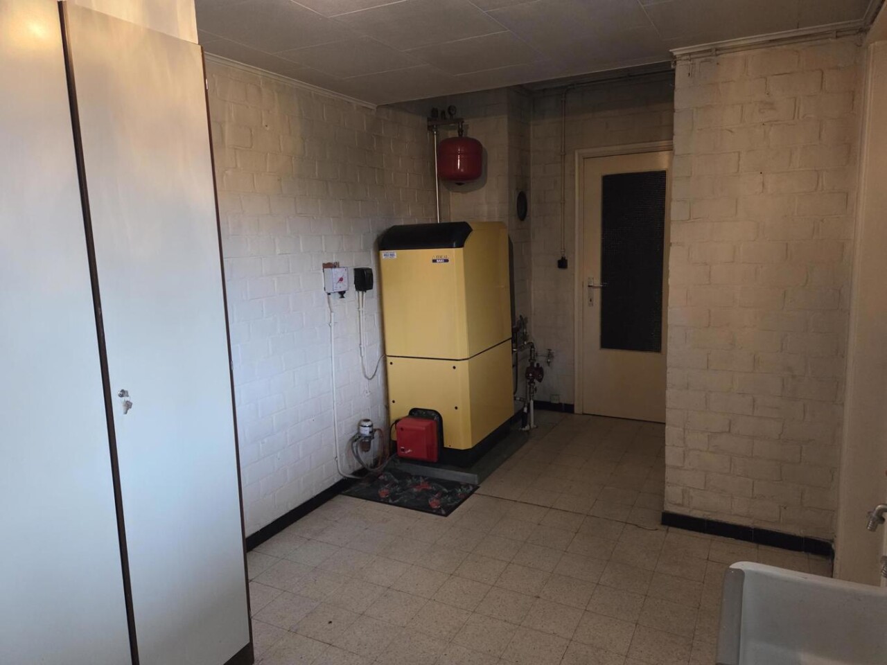 Naast de woonkamer ligt de ingerichte leefkeuken, die voldoende plaats biedt voor een eettafel en zo het hart van het dagelijkse gezinsleven vormt. De keuken sluit aan op een praktische wasplaats, uitgerust met de CV-brander en voorzien van ruimte voor wasmachine en droogkast. Via de achterinkom heb je directe toegang tot de tuin, wat een meerwaarde is voor wie graag buiten leeft of kinderen heeft die graag spelen. Op het gelijkvloers is er bovendien een apart toilet voorzien en een inpandige garage die zowel geschikt is voor een wagen als voor extra opslag of hobbyruimte. Als bijkomend voordeel beschikt de woning over een kelder die ideaal is voor voorraad of seizoensgebonden spullen.