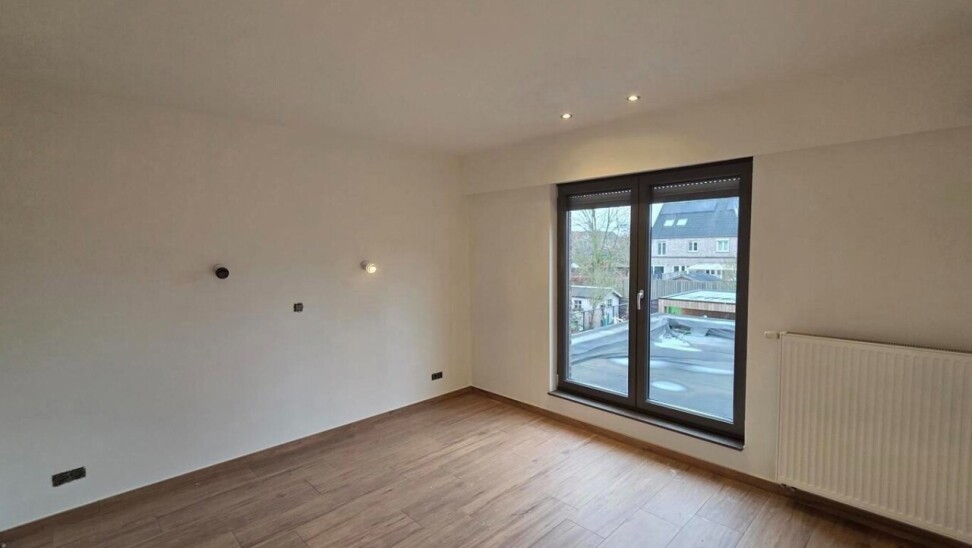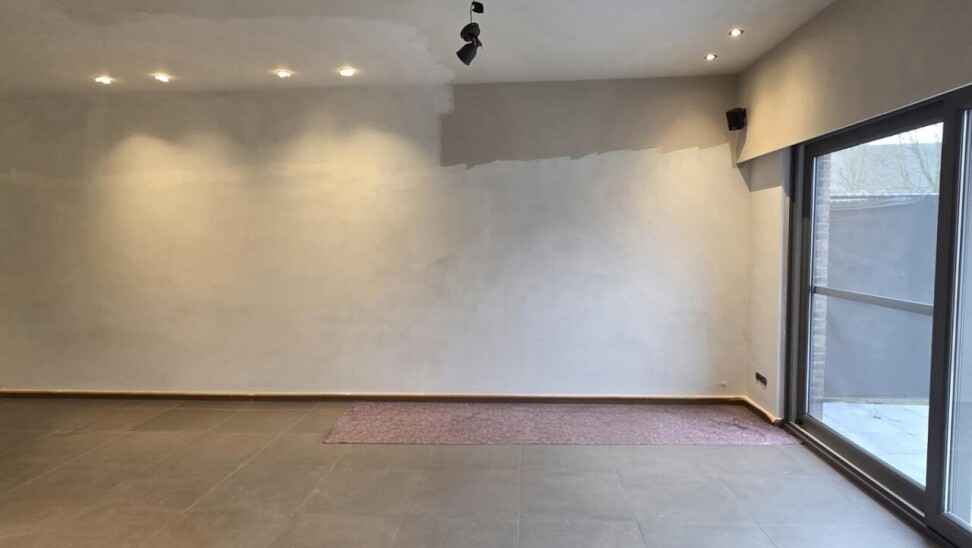 De leefruimtebeschikt over voldoende natuurlijke lichtinval door de grote raampartijen en biedt een mooi zicht op de onderhoudsvriendelijke, zuidwest gerichte tuin. Dankzij het tuinpoortje achteraan is de tuin ook langs buiten toegankelijk, wat extra praktisch is voor bijvoorbeeld fietsen of vuilbakken.