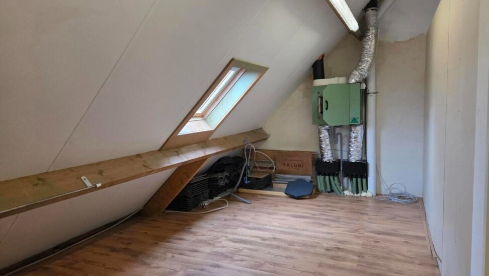 De zolderverdieping is niet volledig afgewerkt, maar biedt een mooie opportuniteit: de ruimte is groot genoeg om om te vormen tot hobbykamer of polyvalente ruimte, afhankelijk van wat je maar nodig hebt.