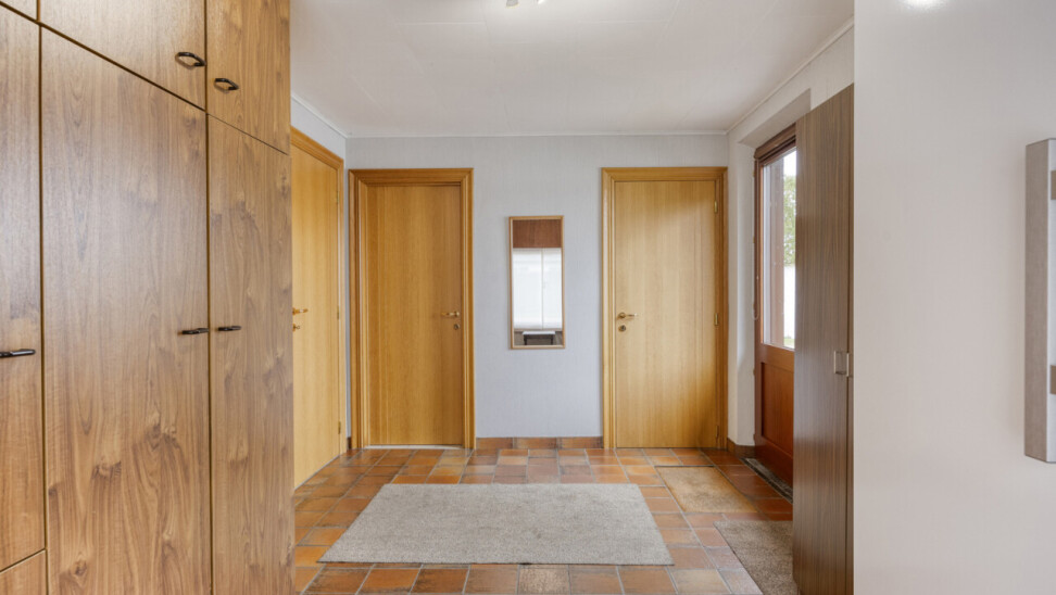 De centrale nachthal is eveneens bereikbaar via de woonkamer en leidt naar de drie slaapkamers.