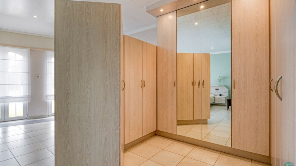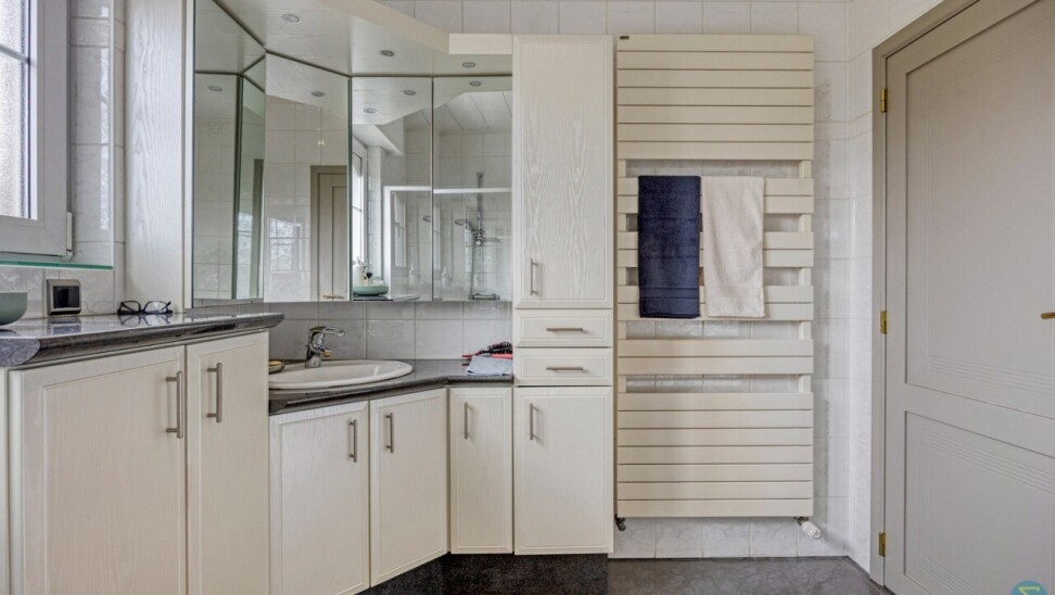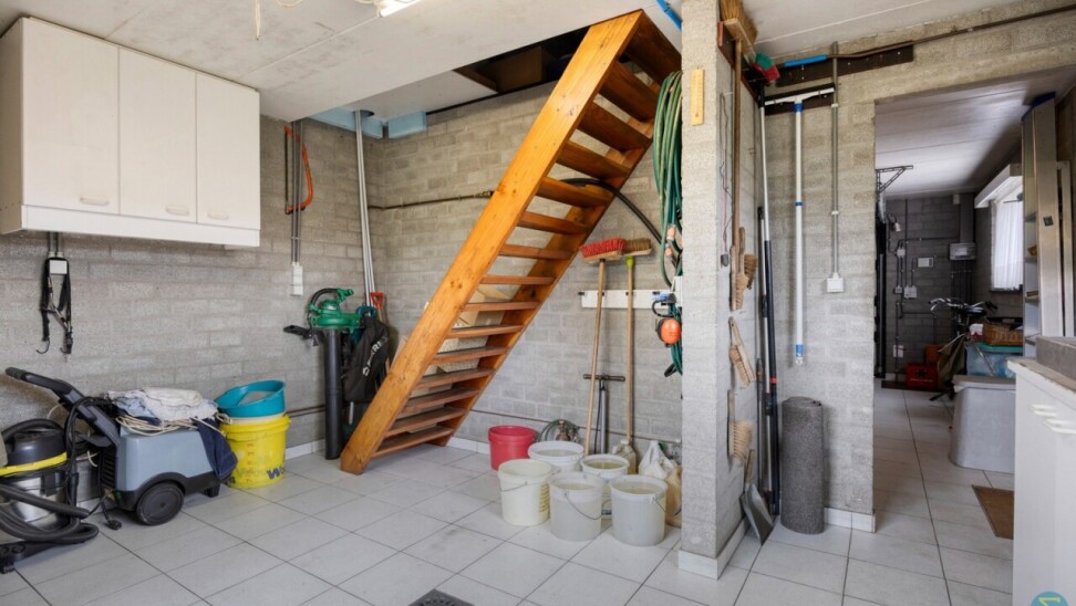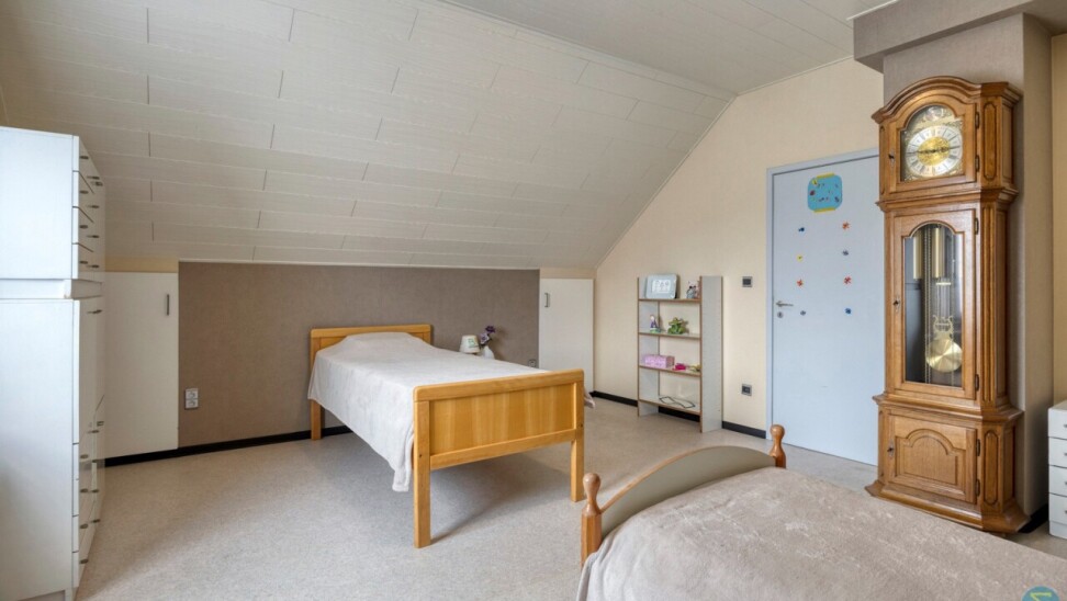 De hal leidt naar de kelder, praktische berging, aparte wasplaats, een tweede toilet en een piekfijn onderhouden badkamer met ligbad en douche. De ruime slaapkamer is voorzien van een ingebouwde dressing. De zolderverdieping is bereikbaar via een vaste trap en is deels ingericht als extra slaapkamer, met nog verdere mogelijkheden tot afwerking van de rest van de ruimte.