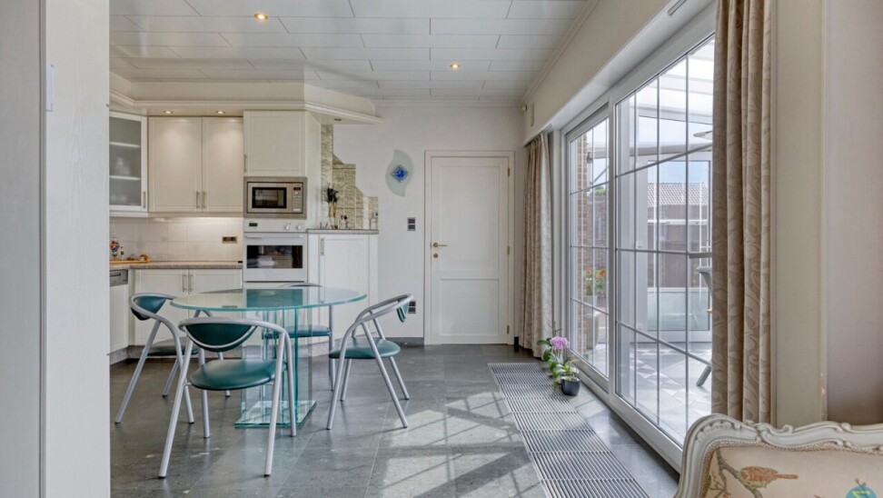Via de ruime inkomhal met gastentoilet betreedt u de gezellige woonkamer, uitgerust met een sfeervolle gashaard en een karaktervolle schouw in Franse kalksteen. Aansluitend bevindt zich de volledig uitgeruste en goed onderhouden keuken. Zowel vanuit de keuken als de woonkamer heeft u toegang tot de grote veranda, die uitkijkt op de prachtige tuin.