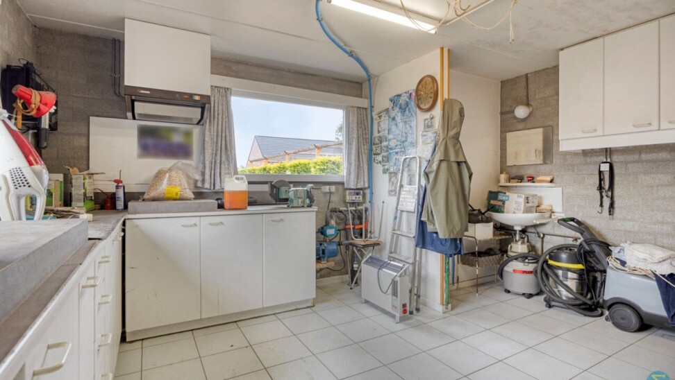 Buiten geniet u van een uitzonderlijk ruime tuin met diverse bijgebouwen, waaronder houtopslag, een werkhuis en een kippenhok. Vooraan bevindt zich een vrijstaande garage met kitchenette, toilet en een volledig ingerichte zolderverdieping, opgedeeld in drie aparte ruimtes.