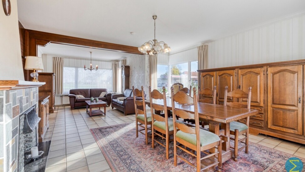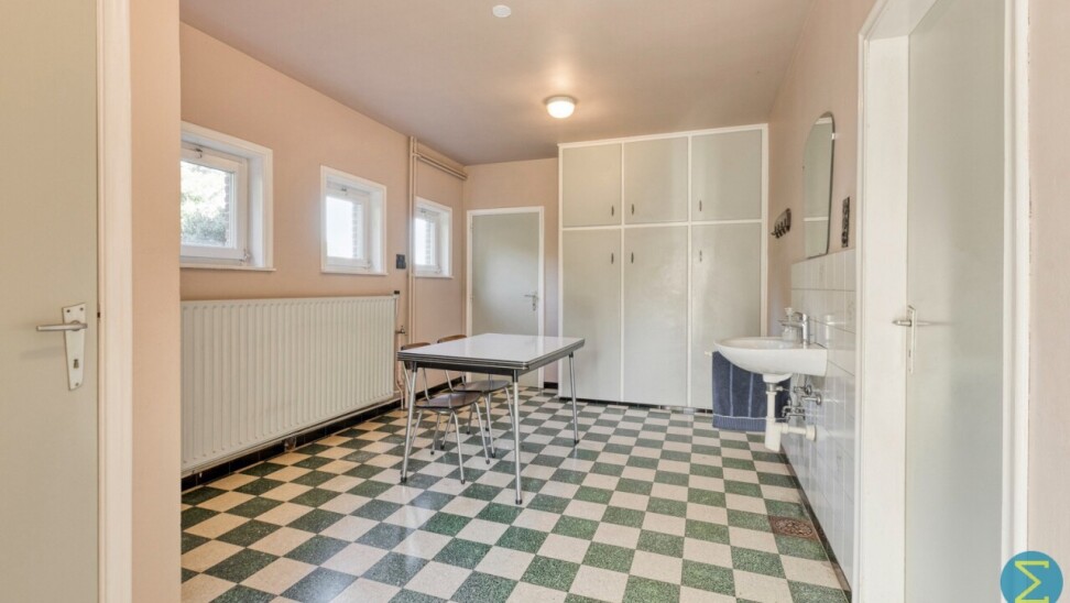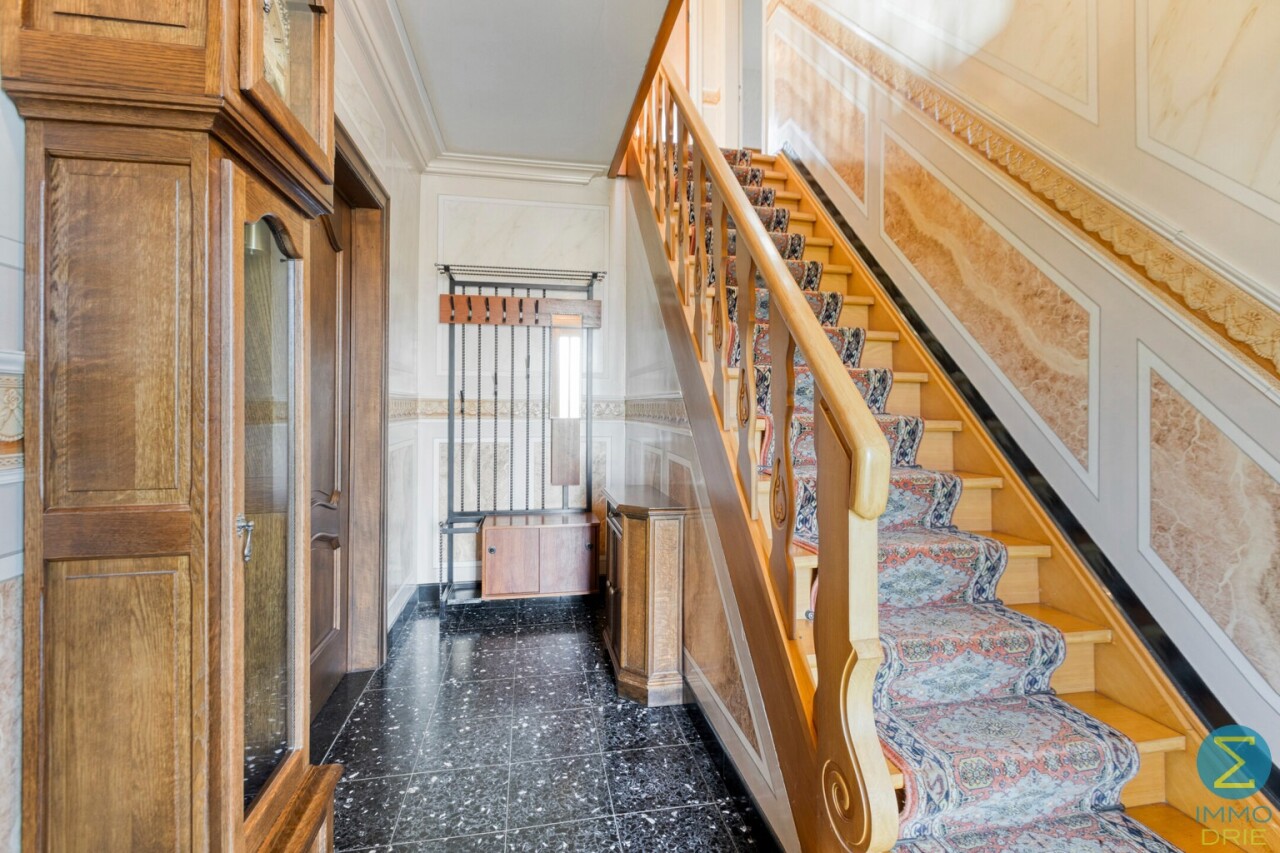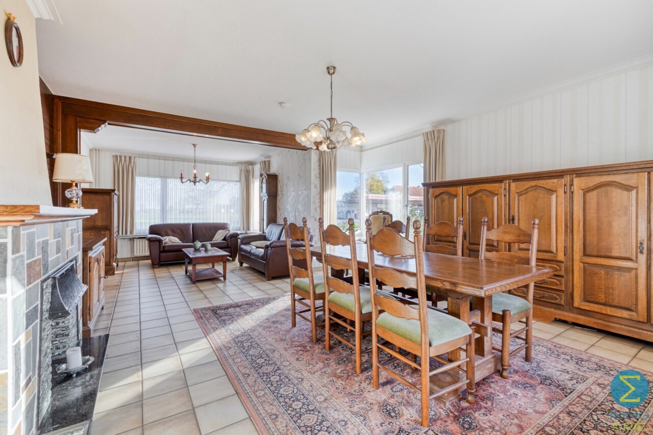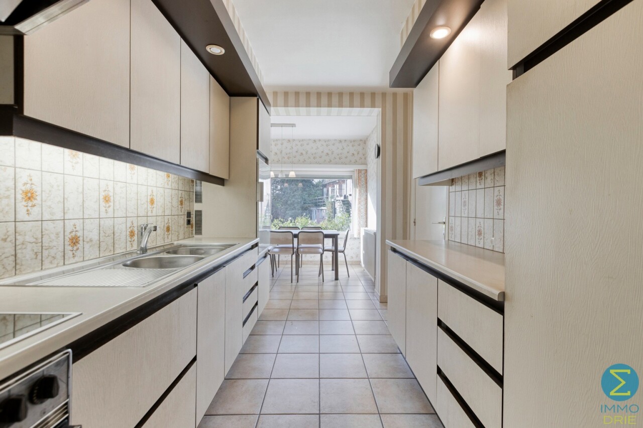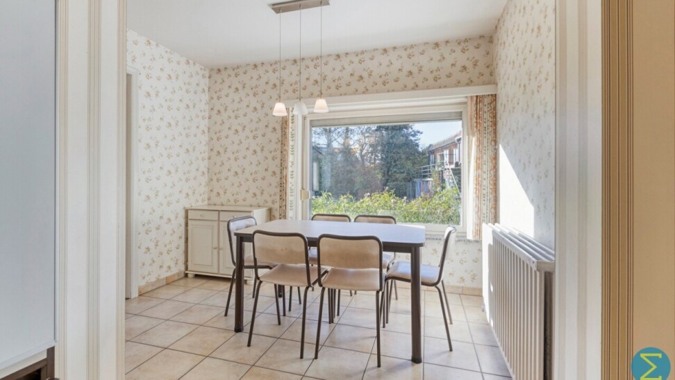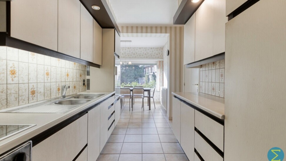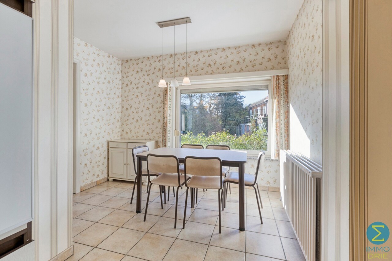 Vanuit de karaktervolle inkomtraphal begeeft u zich naar de ruime woonkamer, dewelke verder aansluit bij de keuken met eethoek en kelder, alsook rechtstreekse doorgang verschaft naar het terras. Vervolgens komt men in de royale berging/wasruimte met apart toilet en achterinkom en bereikt men tevens de inpandige garage.