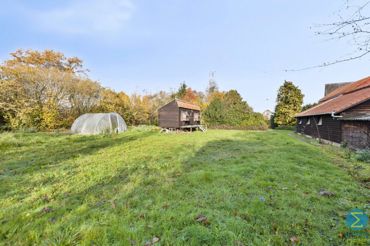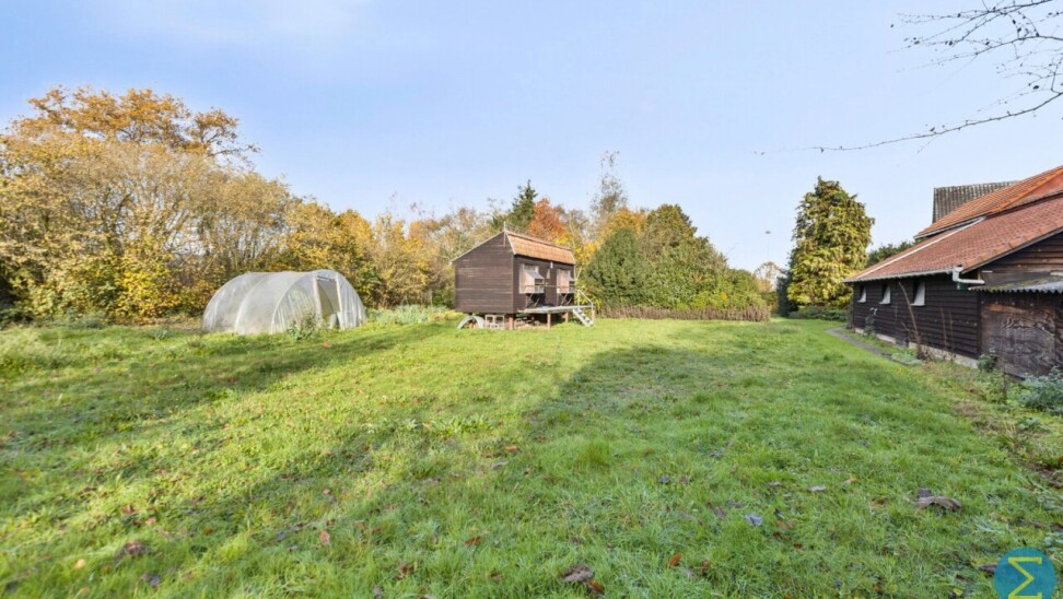 Buiten voorziet dit eigendom een zeer royale tuin met mogelijkheden voor het houden van dieren. Momenteel bevinden er zich twee bijgebouwen, bestaande uit bergingen en bovenliggende duiventillen.