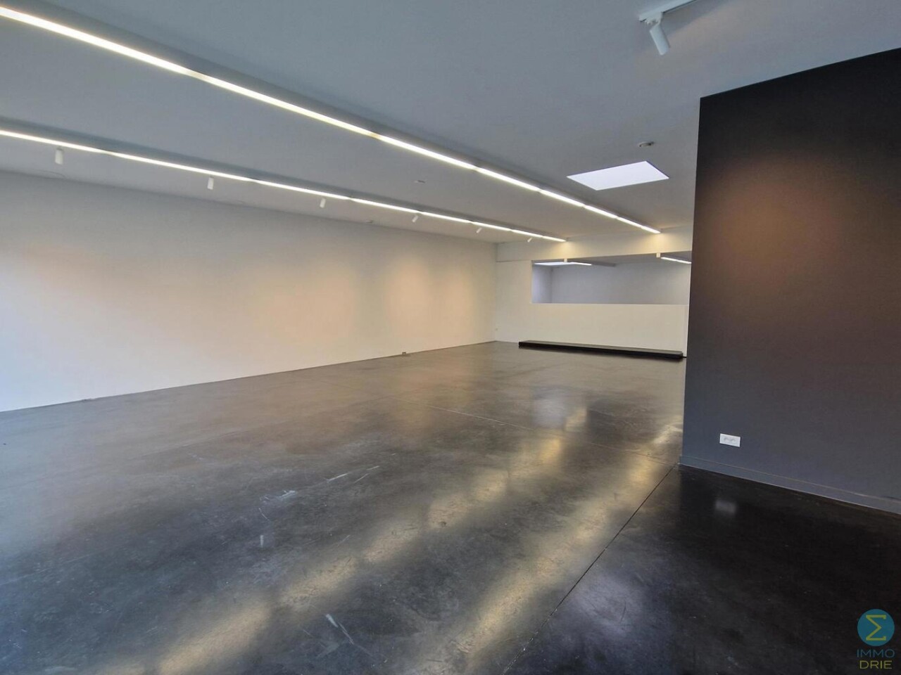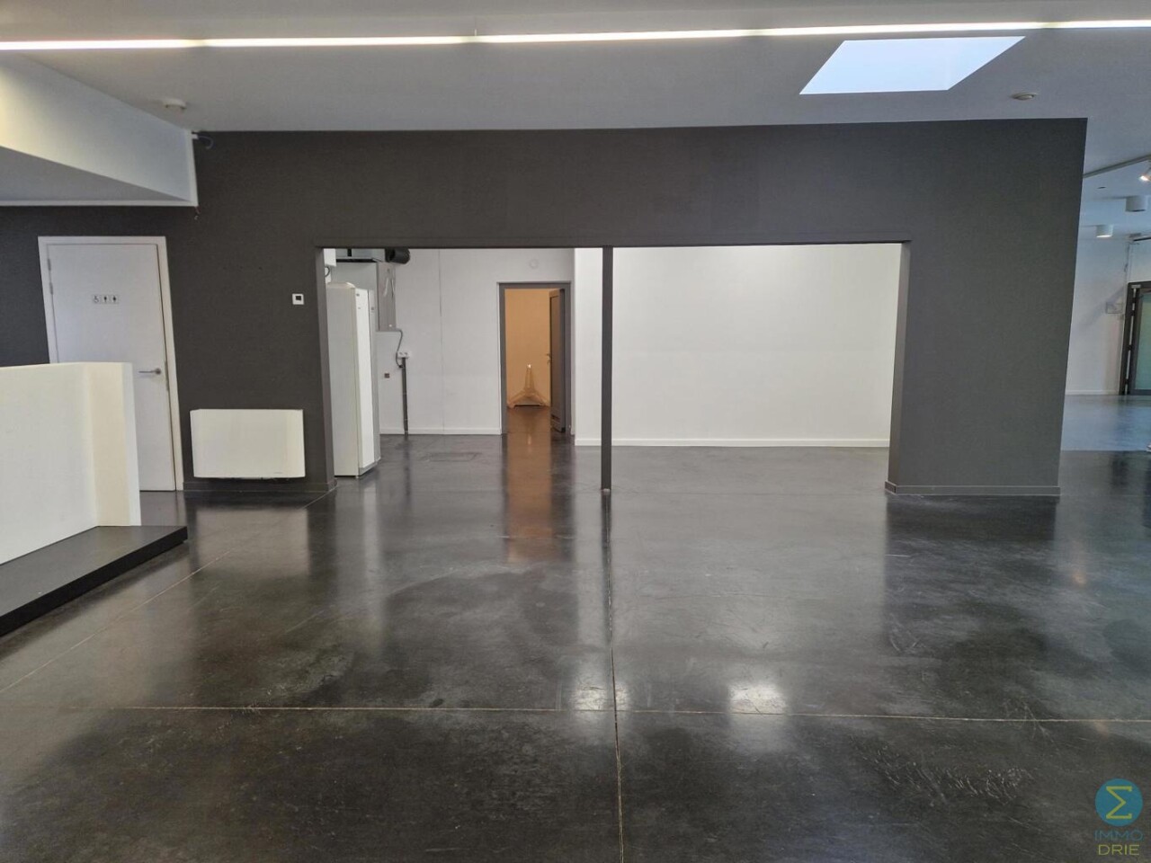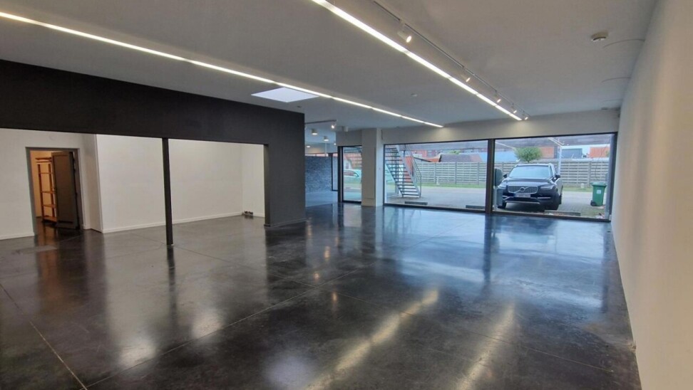Mooie commerciële ruimte (met bovenliggende studio!) van ca 250m² nabij het centrum met apart bureel, deels aparte vergaderruimte, kitchenette, toiletten M/V en een tuintje achteraan.