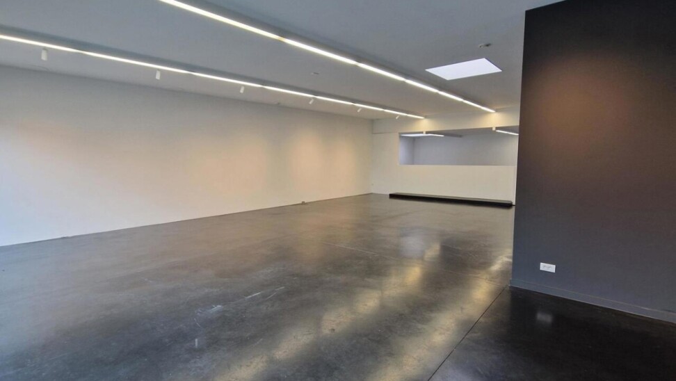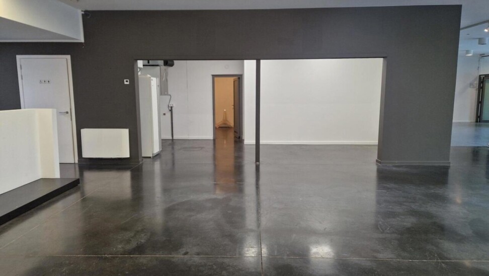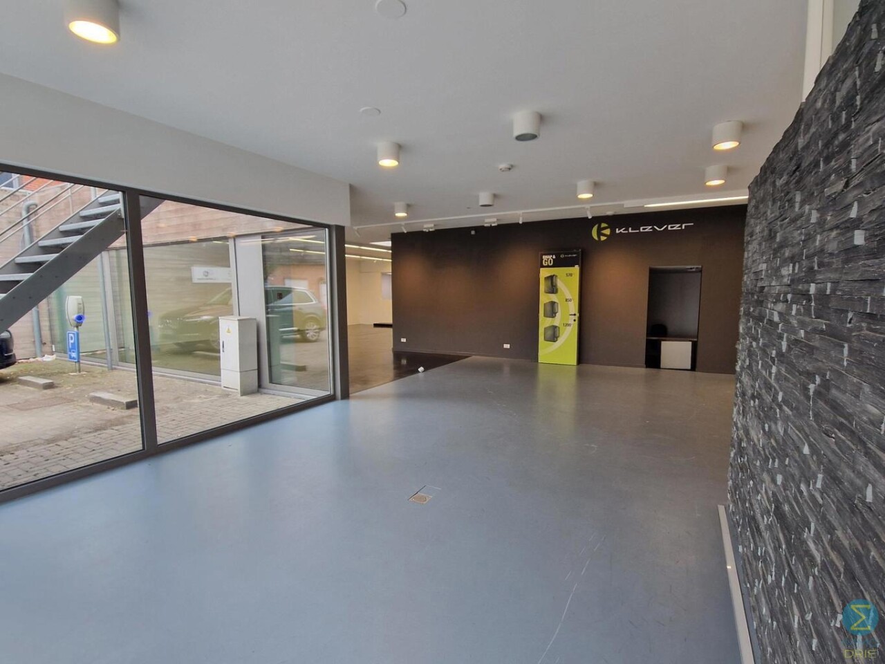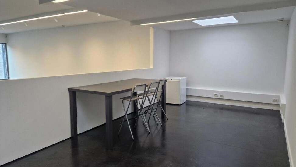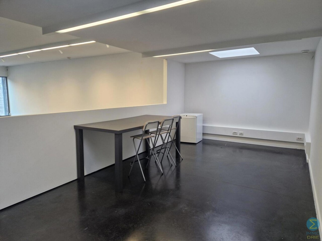 Mooie commerciële ruimte (met bovenliggende studio!) van ca 250m² nabij het centrum met apart bureel, deels aparte vergaderruimte, kitchenette, toiletten M/V en een tuintje achteraan.
