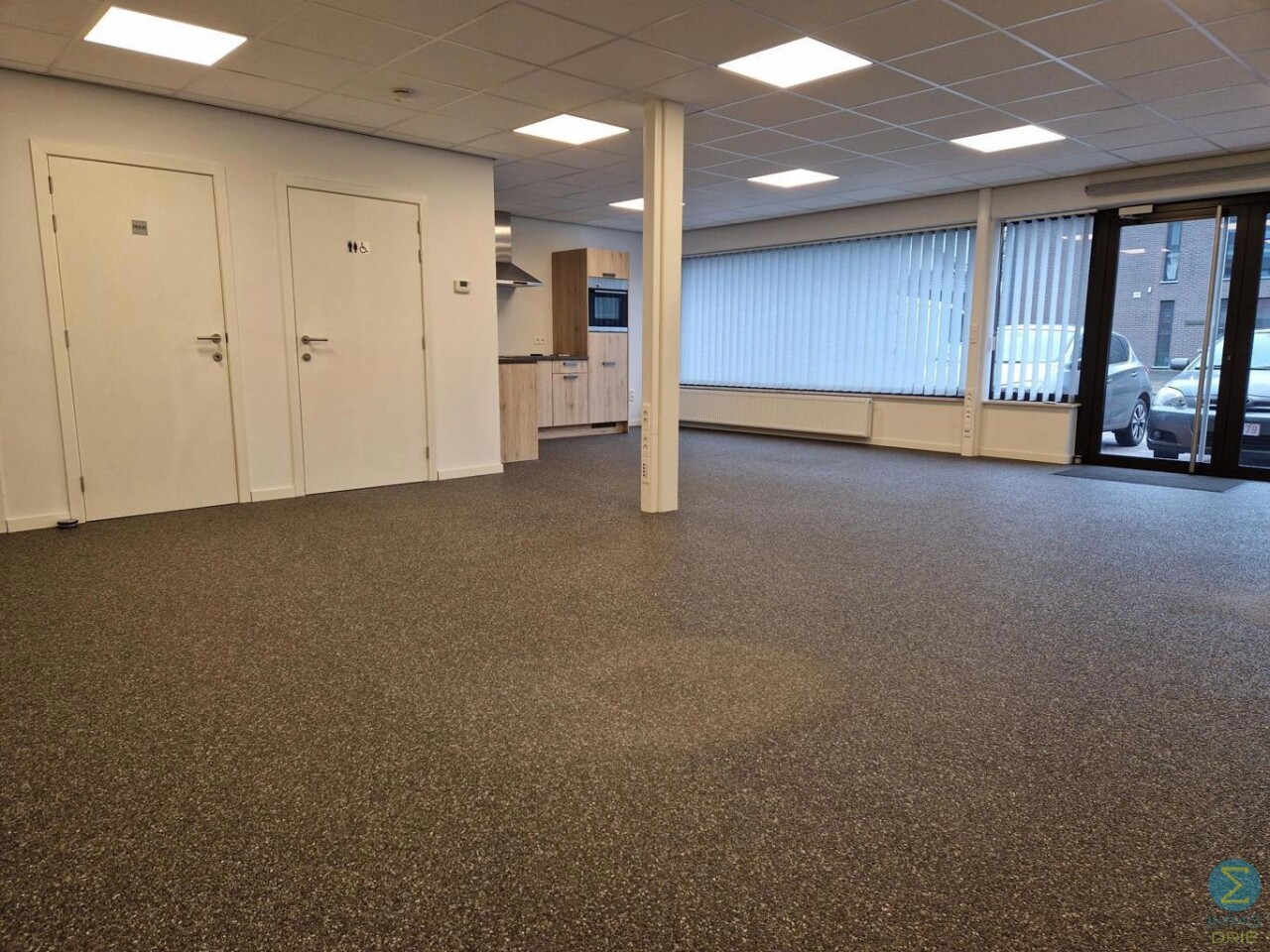 Prachtige kantoorruimte met uitgebouwde kitchenette, 2 toiletten en 3 privatieve parkeerplaatsen.